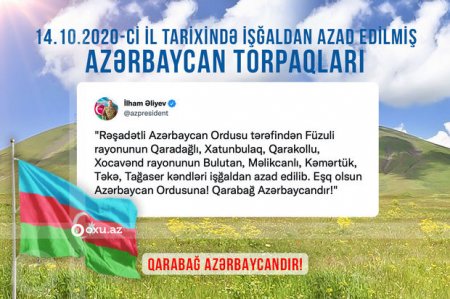 15:11 | 08 noyabr 202519:33 | 21 oktyabr 2025Prezident İlham Əliyev Qarabağın və Şərqi Zəngəzurun bərpasına dəstək üçün qardaş ölkələrə təşəkkür edib21:39 | 08 oktyabr 2025 -