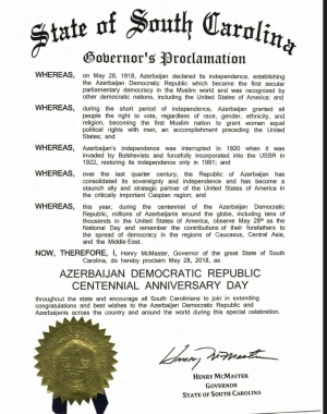 В штате Южная Каролина 28 мая объявлен "Национальным днем Азербайджана"
