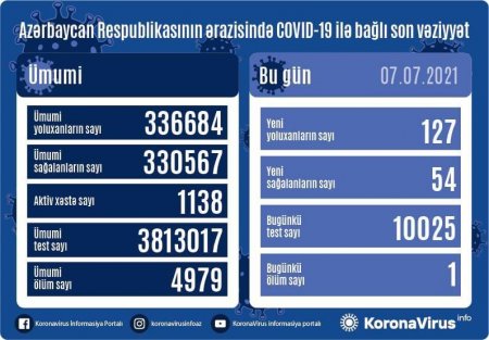 Azərbaycanda son sutkada COVID-19-a yoluxma sayı açıqlandı