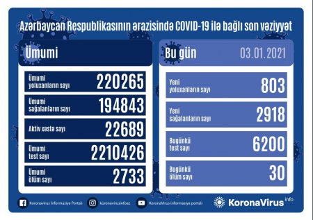 Azərbaycanda bir gündə 4209 nəfər COVID-19-dan sağalıb, 1101 nəfər yoluxub, 37 nəfər vəfat edib