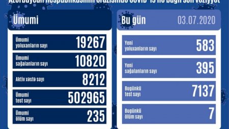 Azərbaycanda daha 537 nəfər yoluxdu, 7 nəfər öldü