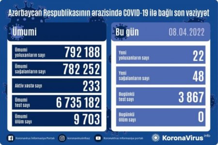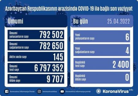Azərbaycanda son sutkada 6 nəfər koronavirusa yoluxub, ölən olmayıb
