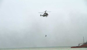 Xəzərdə gəmi yanır, vertolyotlar qaldırıldı