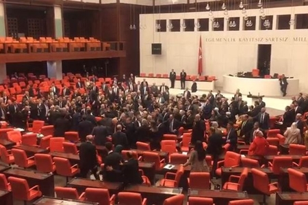 Türkiyə parlamentində deputatlar əlbəyaxa oldular - VİDEO