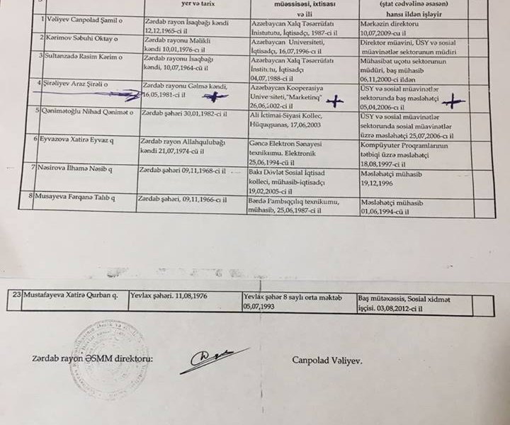 DSMF Zərdab Rayon Şöbəsinin müdiri Canpolad Vəliyevin KORRUPSİYA FAKTLARI - İdarənin əməkdaşına qanunsuz əmək stajı yazıb (FOTOFAKT)