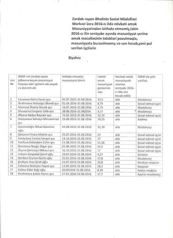 DSMF Zərdab rayon şöbəsinin məzuniyyətə göndərilmədən məzuniyyət pulları mənimsənilən işçilərinin siyahısını sizə təqdim edirik: ![]()