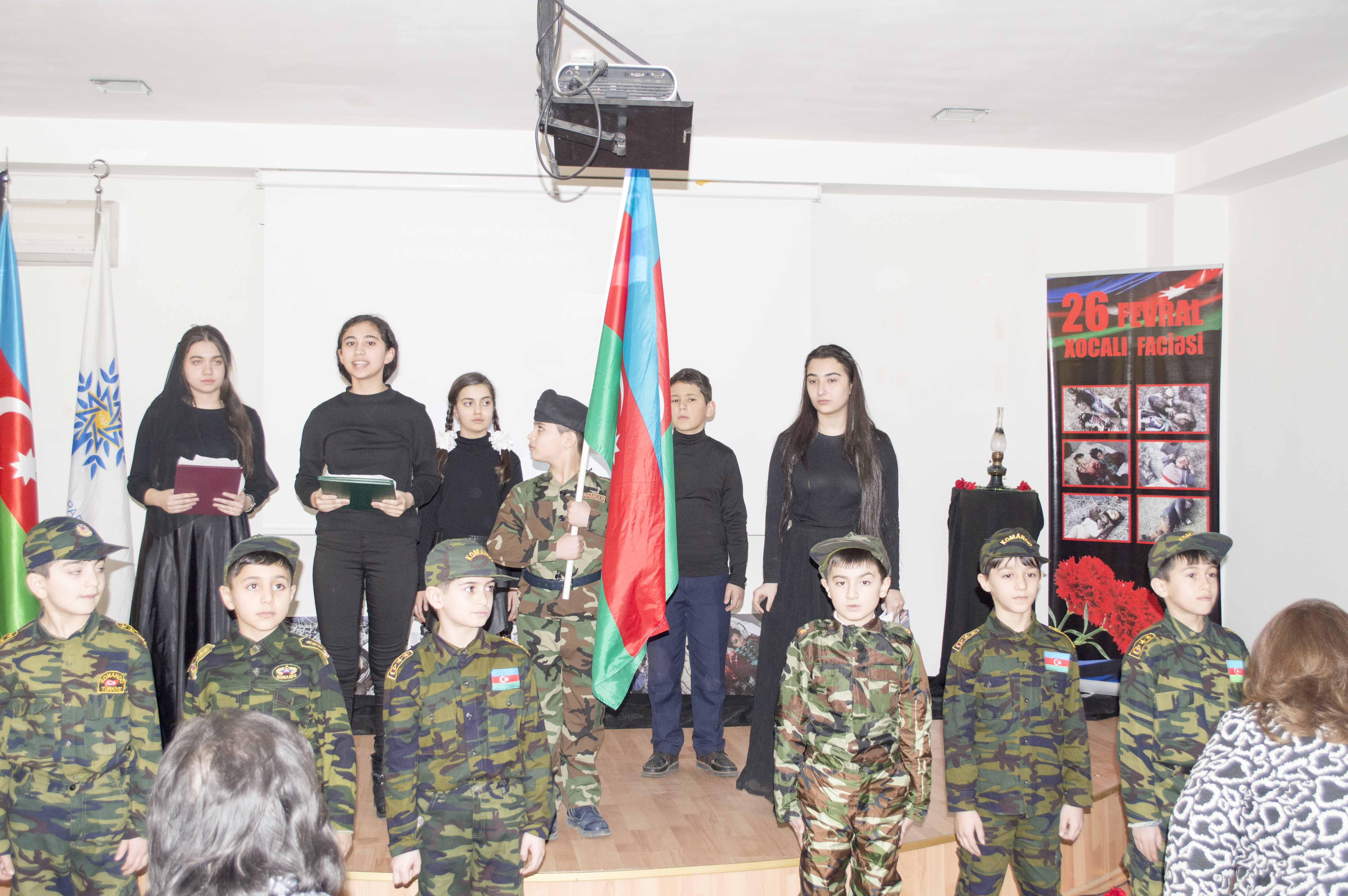 Rəsmi hissədən sonra tədbir Nərimanov rayonunda yerləşən 291 saylı orta məktəbin şagirdlərinin hazırladığı Xocalı soyqırımına həsr olunmuş və burada törədilən dəhşətləri əks etdirən ədəbi-bədii kompozisiya ilə davam etdirilmişdir.![]()