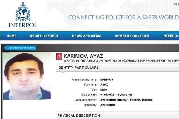 Keçmiş milli təhlükəsizlik naziri Eldar Mahmudovun oğlu Anar Mahmudovun şəriki dövlətlərarası axtarışa verilib. İnterpolun saytında yerləşdirilən məlumatda qeyd olunur ki, 1972-ci il təvəllüdlü Ayaz Kərimov vəzifə səlahiyyətlərini aşma və özgəsinin əmlakını ələ keçirməkdə təqsirləndirilir. A.Kərimov Azərbaycanı tərk etdiyi üçün onun barəsində beynəlxalq axtarış elan edilib və saxlanılması üçün İnterpola müraciət olunub. APA-nın məlumatına görə, “Caspian Telekommunications” şirkətinin rəhbəri olan Ayaz Elxan oğlu Kərimovun əmlaklarına da həbs qoyulub. Onun əmlakı - Abşeron rayonundakı torpaq sahəsi 70 min manat, “Harley Devidson” markalı motosikleti 12.500 manat, “AKEY” MMC-nin adına rəsmiləşdirilmiş “Maserati Quatroporte” markalı avtomobil 155 min 733 manat 8 qəpik, “Jaguar XJ” markalı avtomobil 140 min 529 manat məbləğində qiymətləndirilib.