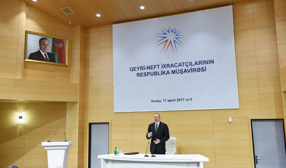 Aprelin 17-də Qeyri-neft ixracatçılarının Yevlaxda keçirilən respublika müşavirəsində Azərbaycan prezidenti İlham Əliyev mühüm mesajlar verib. Dövlət başçısı cari ilin birinci rübündə ölkəmizdə əldə edilən uğurlara toxunaraq deyib: “Bu ilin göstəriciləri çox sevindiricidir. Mən bu barədə artıq demişəm, bir daha demək istəyirəm ki, bu ilin üç ayının göstəriciləri bizi çox ruhlandırır. Bu, bir daha göstərir ki, 2016-cı ildə qəbul etdiyimiz qərarlar və başladığımız islahatlar qısa müddət ərzində öz gözəl nəticələrini verib”.
