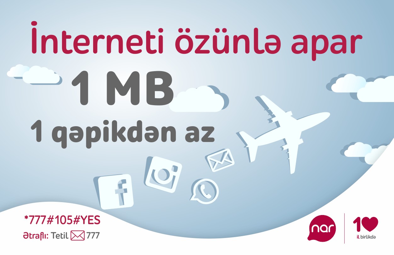 “Nar” rominqdə olan abunəçilər üçün əlverişli “Tətil” paketlərini təqdim etdi. Sərfəli internet paketləri sayəsində “Nar” abunəçiləri artıq xaricdə də özlərini evdəki kimi hiss edəcəklər. Bundan sonra səfərdə olarkən, Wi-Fi axtarmağa ehtiyac qalmayacaq. Səfərə çıxdıqda, “Nar”-ın “Tətil”paketlərindən birini sifariş edərək səyahət etmək olduqca sərfəlidir.