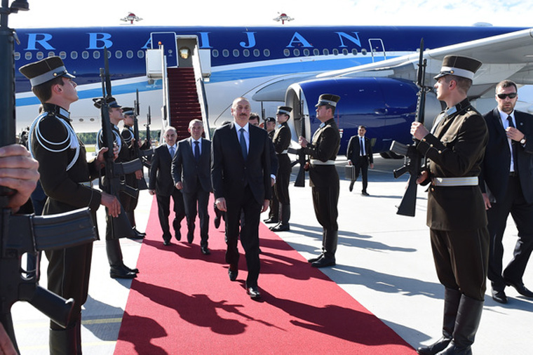 Rubrika.az "Ölkə.Az"-a istinadən xəbər verir ki, hər iki ölkənin dövlət bayraqlarının dalğalandığı qəsrin qarşısında Azərbaycan Prezidentinin şərəfinə fəxri qarovul dəstəsi düzülüb.