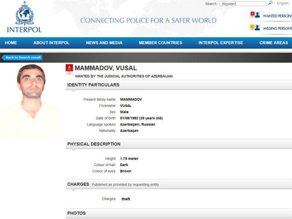 İnterpol daha bir azərbaycanlı barədə axtarış elan edib.