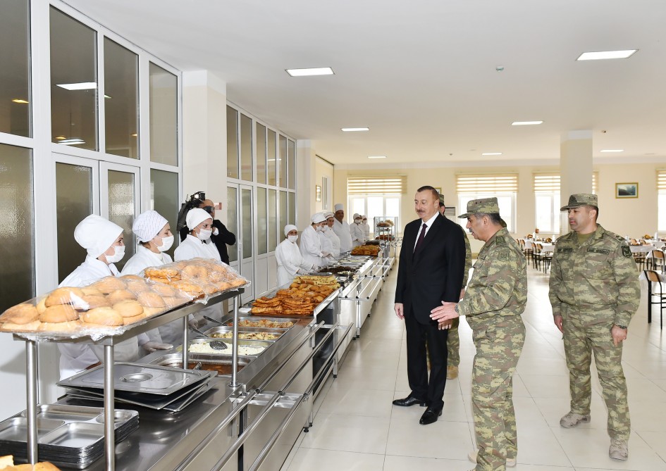 Ali Baş Komandan İlham Əliyev hərbi hissənin yeməkxanasında olub, hərbi qulluqçuların qidalanma şəraiti ilə maraqlanıb.