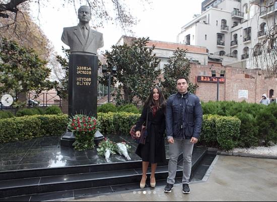 Heydər Əliyev Fondunun vitse-prezidenti Leyla Əliyeva ilə Sevil Əiyevanın oğlu, Azərbaycan Ağır Atletika Federasiyasının vitse-prezidenti Azər Əliyev Gürcüstanda Heydər Əliyevin abidəsini ziyarət ediblər.