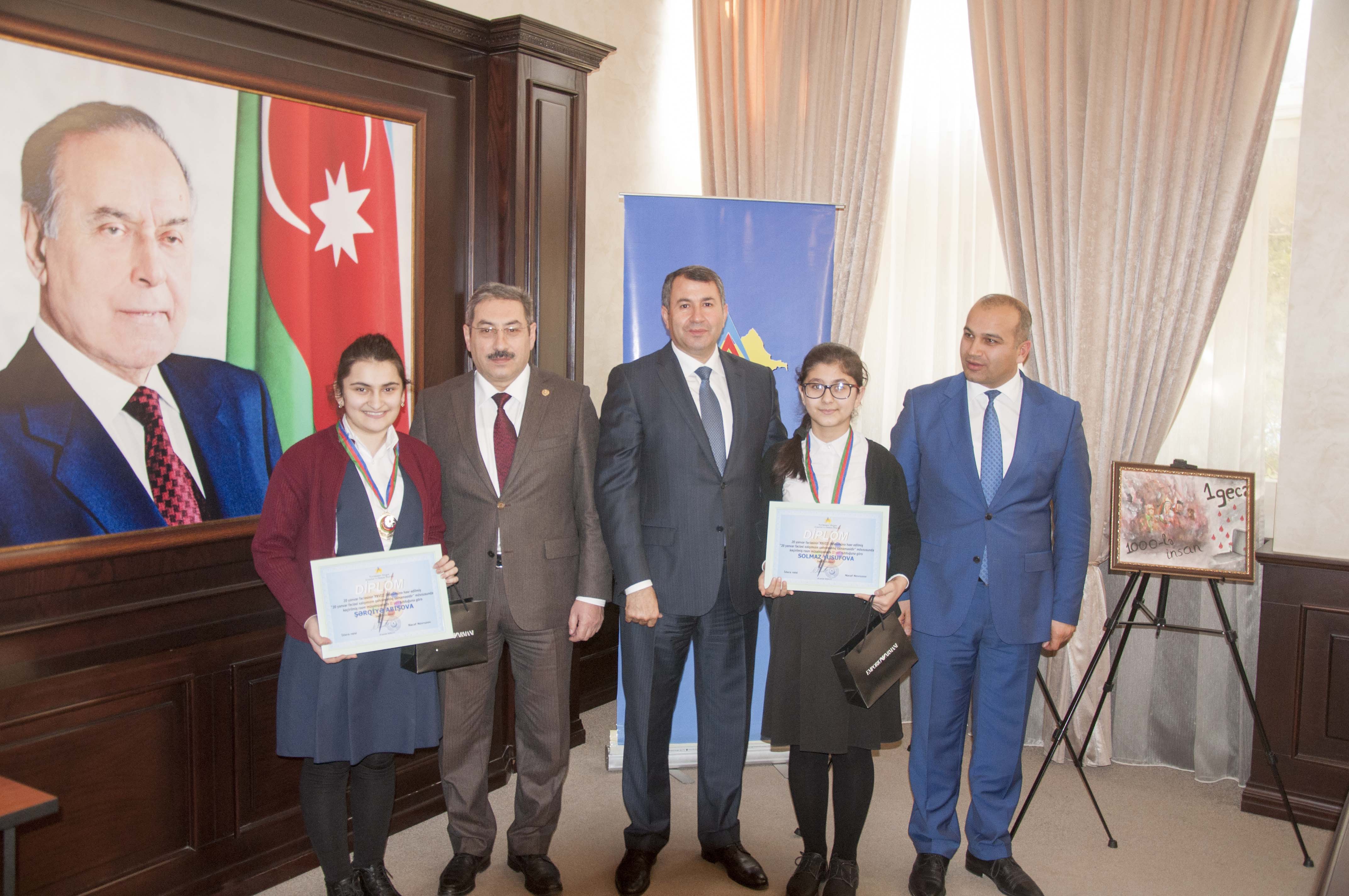 Daha sonra inşa-yazı və rəsm müsabiqələrində fərqlənmiş və qalib gəlmiş şagirdlər təşkiltaçılar tərəfindən müxtəlif dərəcəli diplom və hədiyyələr ilə təltif olunublar.![]()