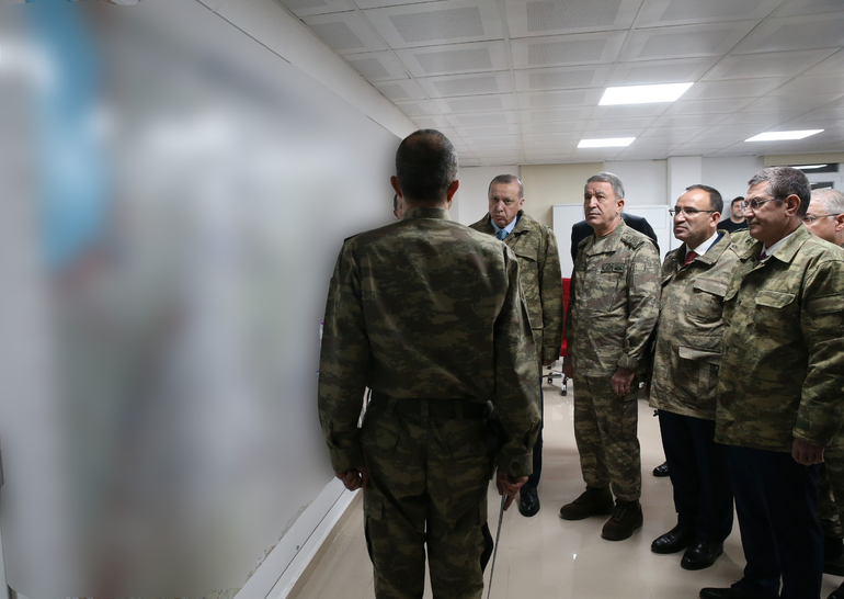 Türkiyə Prezidenti Rəcəb Tayyib Ərdoğan Baş Qərargah rəisi Hulusi Akarla birlikdə “Zeytun budağı” əməliyyatının 6-cı günündə Hataydakı Əməliyyat Mərkəzində olub.