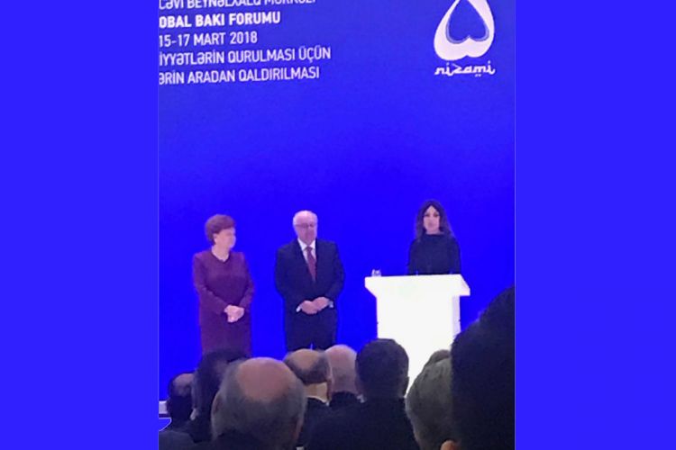 Mərasimdə çıxış edən M. Əliyeva deyib ki, Nizami Gəncəvi Beynəlxalq Mərkəzi qarşılıqlı anlaşmanı, sülhü beynəlxalq səviyyədə təbliğ edir: "Əsrlər boyu Azərbaycan müxtəlif xalqların, dinlərin bir arada yaşadığı ölkə olub. Bu gün biz müstəqillik illərində əldə etdiyimiz nailiyyətlərdən danışdıq. Mən Azərbaycan prezidentinə təşəkkür edirəm. O, həyatını öz xalqının inkişafına həsr edib. Mən bu mükafatı həm də Heydər Əliyev Fondunun fəaliyyətinə verilən qiymət kimi qəbul edirəm. Heydər Əliyev Fondu 14 ildir elm, təhsil və sosial sahələrdə layihələr həyata keçirib".