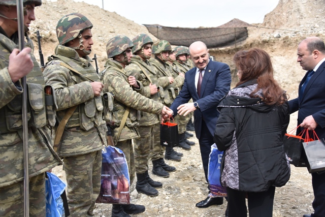 Nəsimi rayon ictimaiyyətinin nümayəndələri cəbhə bölgəsində xidmət edən əsgərlərlə Novruz bayramını qeyd etdilər - FOTOLAR