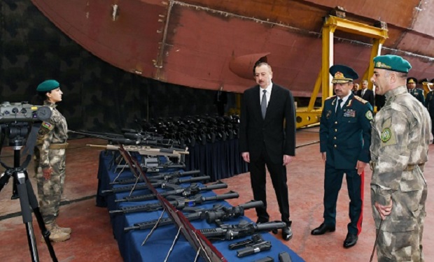 Rubrika.Az "Ölkə.Az"a istinadla xəbər verir ki, Prezident, həmçinin Dövlət Sərhəd Xidmətinin yeni xüsusi təyinatlı döyüş texnikasına, raket komplekslərinə, zərbəendirici pilotsuz uçan aparatlarına, silahlara, nəqliyyat vasitələri üzərində texniki-nəzarət stansiyalarına, idarəetmə və digər təyinatlı avadanlıqlara baxış keçirilib.