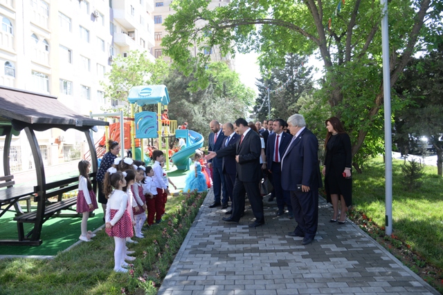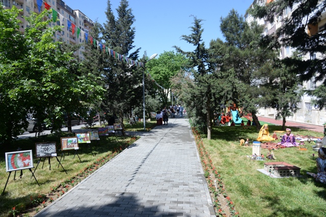 Bayram əhval ruhiyyəsi ilə sakinlərin istifadəsinə verilən parkın açılış mərasimində 2 nömrəli Uşaq Gənclər İnkişaf Mərkəzinin şagirdlərinin əl işlərindən ibarət sərgi və müxtəlif rəqs nömrələri təqdim edildi.