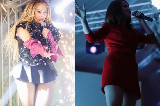 Sevda Yahyayeva mini qırmızı, Aygün Kazımova isə dərin sinə dekolteli libası və mini şortu ilə diqqət çəkib.![]()