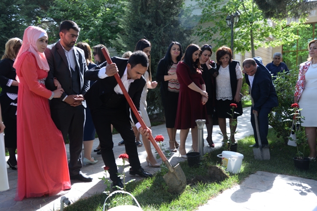 Tədbirin sonunda nikaha daxil olmuş cütlüklər rayon ərazisindəki parklarda və yaşıllıq zolaqlarında 100 ədəd qızılgül kolları əkdilər![]()