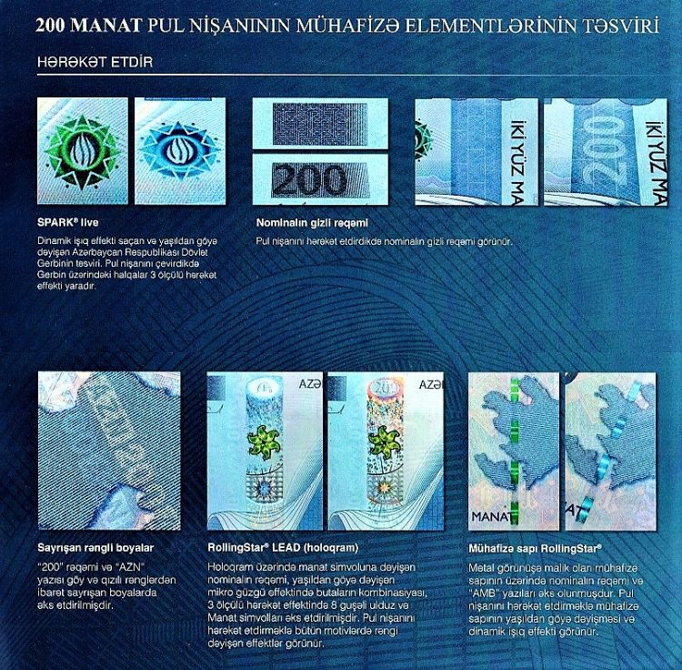 Qeyd olunub ki, Azərbaycan Respublikası Prezidentinin 7 fevral 2005-ci il tarixli fərmanına əsasən 2006-cı il yanvarın 1-dən manatın denominasiyası həyata keçirilib və tədavülə yeni nəsil pul nişanları buraxılıb. "Vahid ailə” konsepsiyası əsasında hazırlanmış yeni nəsil kağız və metal pul nişanları Azərbaycanın bütün sahələrdə müstəqilliyini, ölkəmizin qədim tarixini, zəngin mədəniyyətini, milli-mənəvi dəyərlərini, müstəqillik illərində dinamik inkişafını özündə əks etdirib. 12 il müddət keçməsinə baxmayaraq, milli pul nişanları estetik görünüşünə, konseptual mövzusuna, müasirliyinə görə öz aktuallığını qoruyur. Azərbaycan Mərkəzi Bankı nağd pul sferasında müasir çağırışları nəzərə alaraq pul nişanlarımızın mühafizə sistemlərinin müasirləşməsini daim diqqət mərkəzində saxlayır. Son dekadada ölkə iqtisadiyyatının dinamik inkişafını, dövriyyədə olan nağd pulun strukturunda baş verən dəyişiklikləri nəzərə alaraq eləcə də nağd pul sferasında səmərəliliyin yüksəldilməsinin təmin edilməsi məqsədilə yeni 200 manatlıq pul nişanının tədavülə buraxılması barədə qərar qəbul edilib. Yeni pul nişanının dizaynı hazırlanarkən müsabiqədə ABŞ-ın "Crane Currency” şirkəti tərəfindən təqdim olunan dizayn qalib seçilib. Bu dizayna bir sıra şirkətlərin təqdim etdiyi mütərəqqi mühafizə sistemləri inteqrasiya edilməklə pul nişanı "Giesecke+Devrient” şirkətində istehsal olunub.