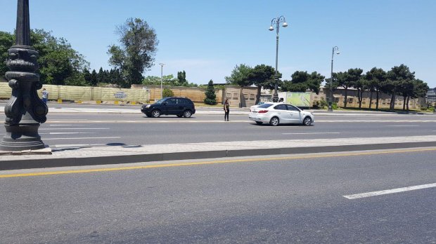 Doğurdan da, prospektin bu hissəsində göz işlədikcə görünən uzaqlıqda piyada keçidi yoxdur. Magistral yolda nəqliyyat vasitələri sıx hərəkət etdiyindən piyadalar bəzən dəqiqələrlə gözləməyə məcbur olurlar. Avtomobil axını azalan kimi bir neçə zolağı qaçaraq keçirlər.