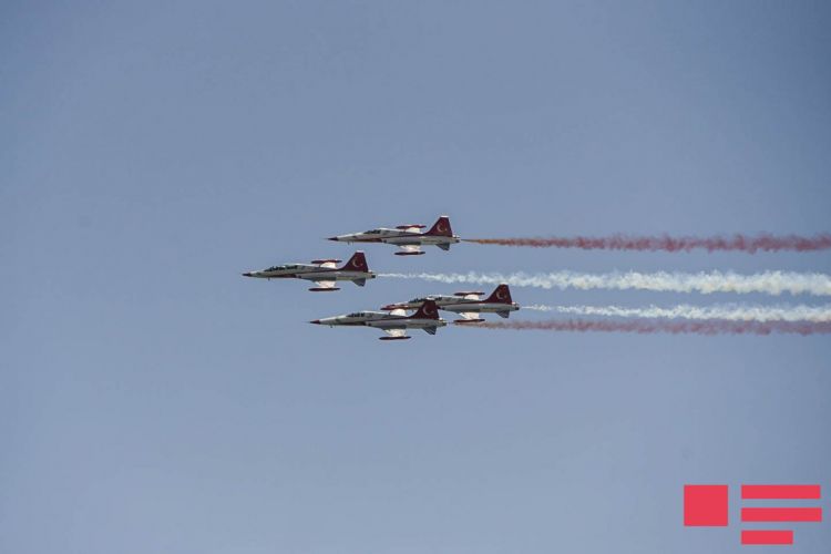 Как сообщает АПА, сегодня после военного парада два самолета F-16 и восемь F-5, входящие в авиагруппы «Solo Türk» и «Türk Ulduzları», совершили демонстрационные полеты над Бакинской бухтой.
