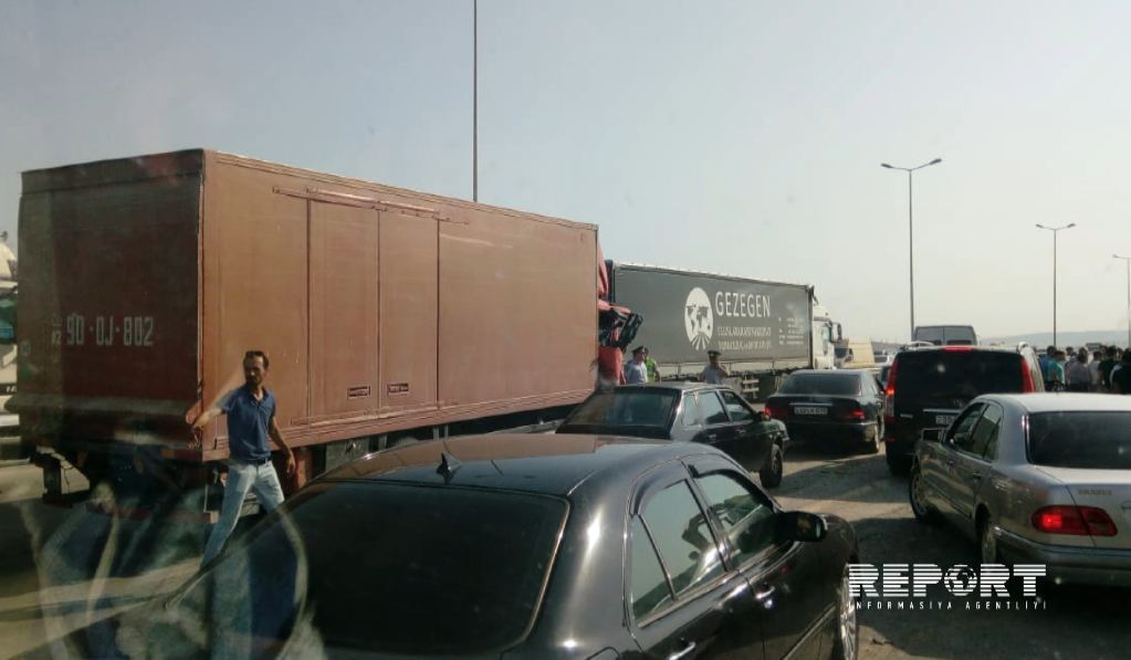 Yük maşını 149 saylı xətt üzrə hərəkətdə olan sərnişin avtobusuna çırpılıb.