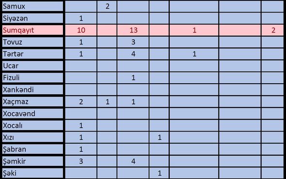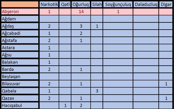 Ölkə üzrə həmin cinayətlərin əks olunduğu cədvəli təqdim edirik:![]()