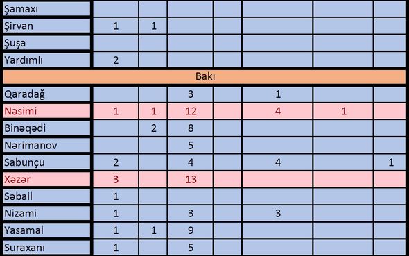 Rubrika.az Oxu.Az-a istinaden xeber verir ki, Daxili İşlər Nazirliyinin rəsmi məlumatlarına əsasən, ötən ay üçün Azərbaycanın ən kriminal rayonlarının siyahısını hazırlayıb.