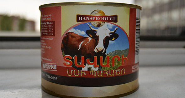 Ermənistanda mağazalarda “Əsgər payı” markalı konservləri almaq mümkündür.
