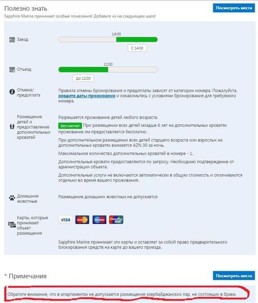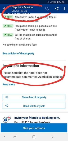 Otel əcnəbiləri açıq şəkildə ölkə vətəndaşlarından üstün tutaraq, otellərin bron olunması üçün dünyada ən çox istifadə olunan Booking.com saytında bu barədə elan yerləşdirib:![]()