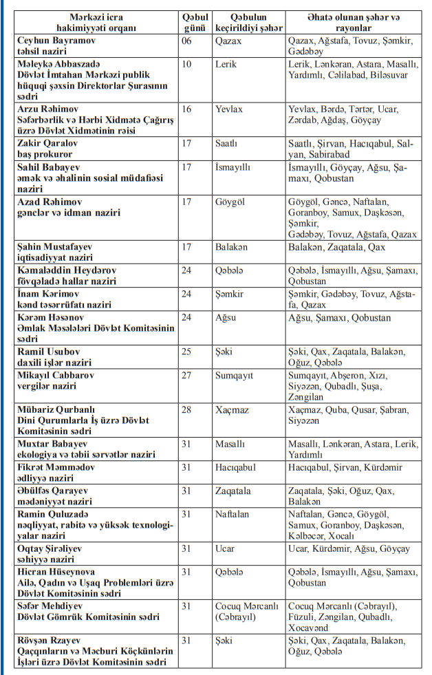 Nazirlər rayonlara gedir - SİYAHI