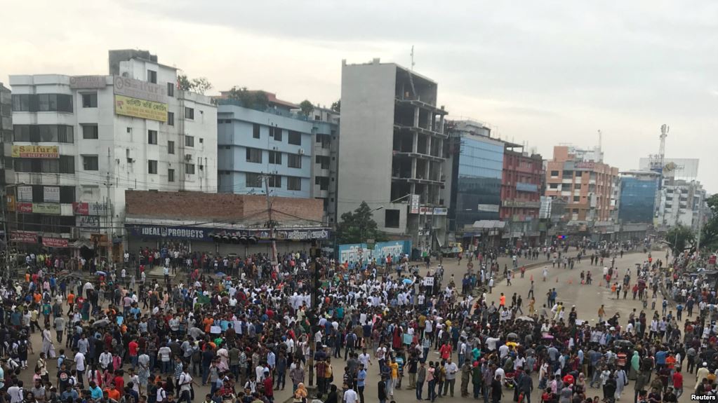 Rubrika.Az amerikaninsesi.org-a istinadla bildirir ki, rəsmilər şagirdləri paytaxt Dəkkədə etirazlara son qoymağa çağırır. Bu etirazlar səbəbilə xarici səfirliklər ora səyahət edən vətəndaşlarına xəbərdarlıq edib.