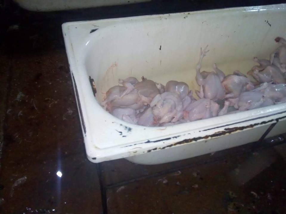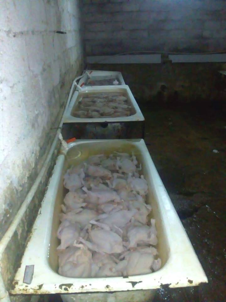 500 ədəd soyudulmuş toyuq cəmdəyi aşkar olunan qanunsuz emal sahəsində heç bir texniki-normativ tələblərə əməl edilmədən kustar üsulla toyuqların kəsildiyi, daha sonra anti-sanitar şəraitdə tükdən təmizləndiyi və uzun müddət su il doldurulmuş natəmiz vannalarda saatlarla saxlanıldığı müəyyən olunub. Eyni zamanda qanunsuz emal sexinin donuz yetişdirmə sahəsi ilə eyni ərazidə olduğu aşkar olunub.