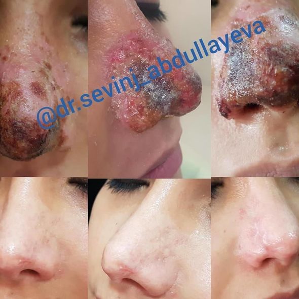 Həftələrlə uzun sürən müalicə nəticəsində burunu xilas edə bildik”.![]()