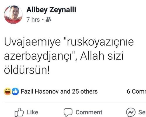 Qeyd edək ki, jurnalist Əlibəy Zeynallı rusdilli şəxslərlə bağlı Facebook-da aşağıdakı statusu yazmışdı:![]()