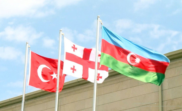 Azərbaycan, Türkiyə və Gürcüstanın Dövlət bayraqları qaldırılıb və hər üç ölkənin dövlət himnləri səsləndirilib.