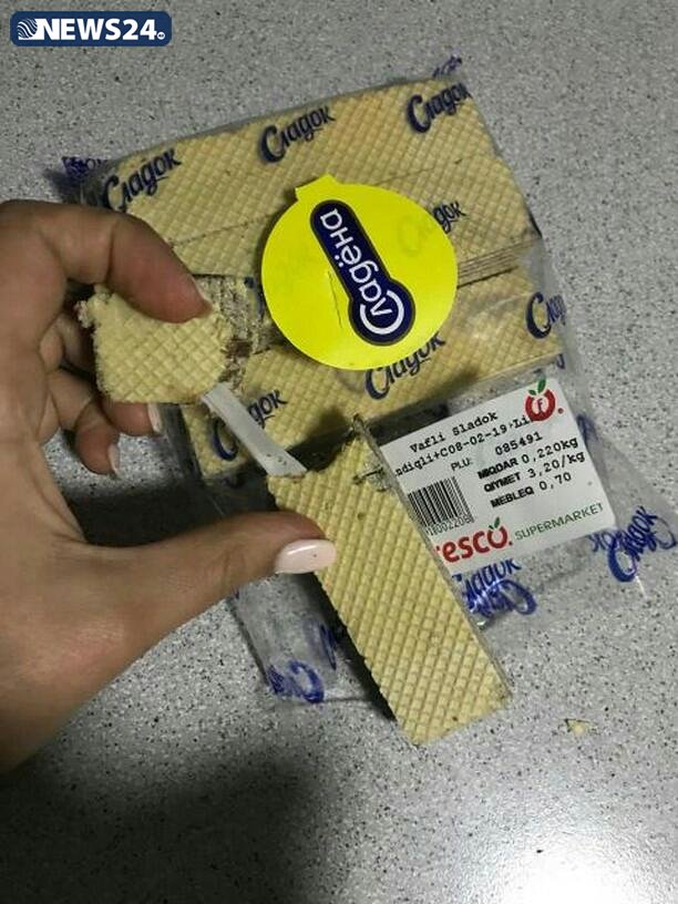 "Avrora" şirkətinə məxsus vaflinin içindən rezin əlcək çıxdı – FOTO