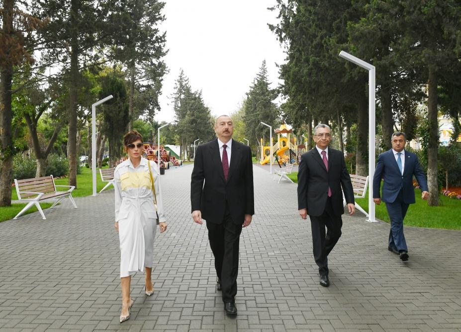 Prezident İlham Əliyev və birinci xanım Mehriban Əliyeva Bakının Atatürk prospektində yerləşən parkda əsaslı yenidənqurmadan sonra yaradılan şəraitlə tanış olublar