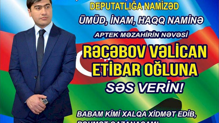 Rubrika.Az-ın yenisabah.az-a istinadla əldə etdiyi məlumatda bildirilir ki, belə namizədlərdən biri də 32 saylı Suraxanı üçüncü seçki dairəsindən namizəd Rəcəbov Vəlican Etibar oğludur. Vəlican Rəcəbovun hədəfə gəlməsinin səbəbi isə təbliğat plakatında “Aptek Məzahirin nəvəsi” qeydidir.
