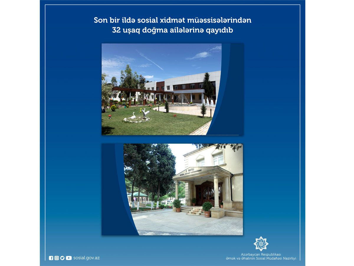 Görülən tədbirlərin nəticəsi kimi, son bir ildə sosial xidmət müəssisələrindən 32 uşaq yenidən doğma ailələrinə qayıdıb.