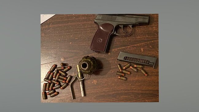 Onun kirayədə yaşadığı mənzilə baxış zamanı oradan 1 ədəd nömrəsi silinmiş "Makarov" markalı tapança, 1 ədəd "F-1" qumbarası, 32 ədəd partron, habelə 8,895 qram narkotik vasitə heroin və 4,403 qram psixotrop maddə hesab edilən metamfetamin aşkar olunaraq götürülüb.