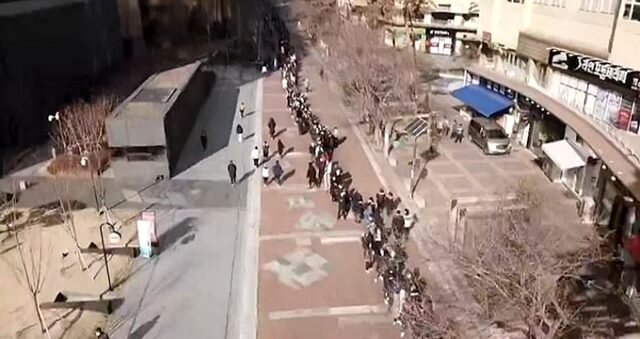 Rubrika.az xarici mediaya istinadən bildirir ki, maska əldə etmək üçün saatlarla növbədə gözləyən insanlar dronlar vasitəsilə görüntülənib.