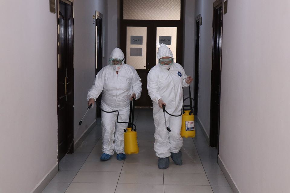 Как сообщили в среду Trend в пресс-службе Университета, продезинфицированы все аудитории учебных корпусов, лаборатории, коридоры, другие помещения и прилегающая территория учебного заведения. Продезинфицированы также общежитие и спортивный зал Университета.