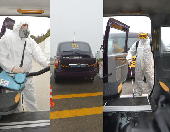 Bakı aeroportunda taksilər dezinfeksiya olunur - FOTO