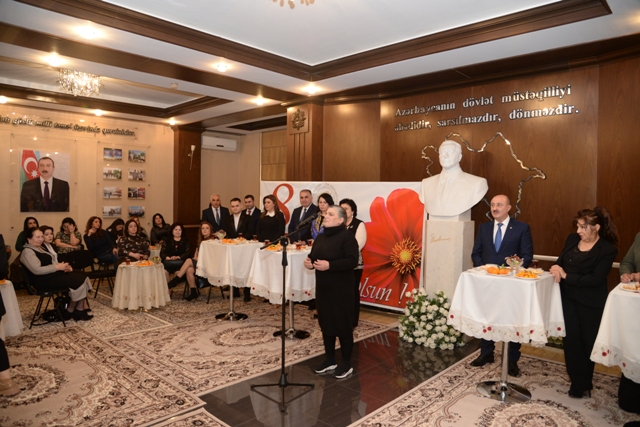 Daha sonra tədbirdə iştirak edən qadınlara rayon İcra Hakimiyyətinin hədiyyələri təqdim olunmuş Azərbaycan Respublikası Milli Konservatoriyası tərkibində Musiqi Kollecinin tələbələrinin və Asəf Zeynallı adına musiqi kolleci Tələbə Gənclər Təşkilatı Ansamblının konsert proqramı ilə başa çatmışdır.![]()