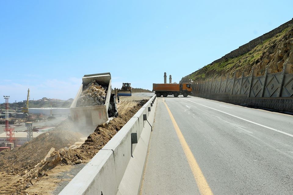 Tikinti-bərpa işlərinin növbəti, sonuncu mərhələsi üzrə hazırda yolun hərəkət hissəsinin tam bərpası istiqamətində addımlar atılır. Bu məqsədlə yamacın doldurulması üçün əraziyə qrunt gətirilərək dolğu işləri görülür.